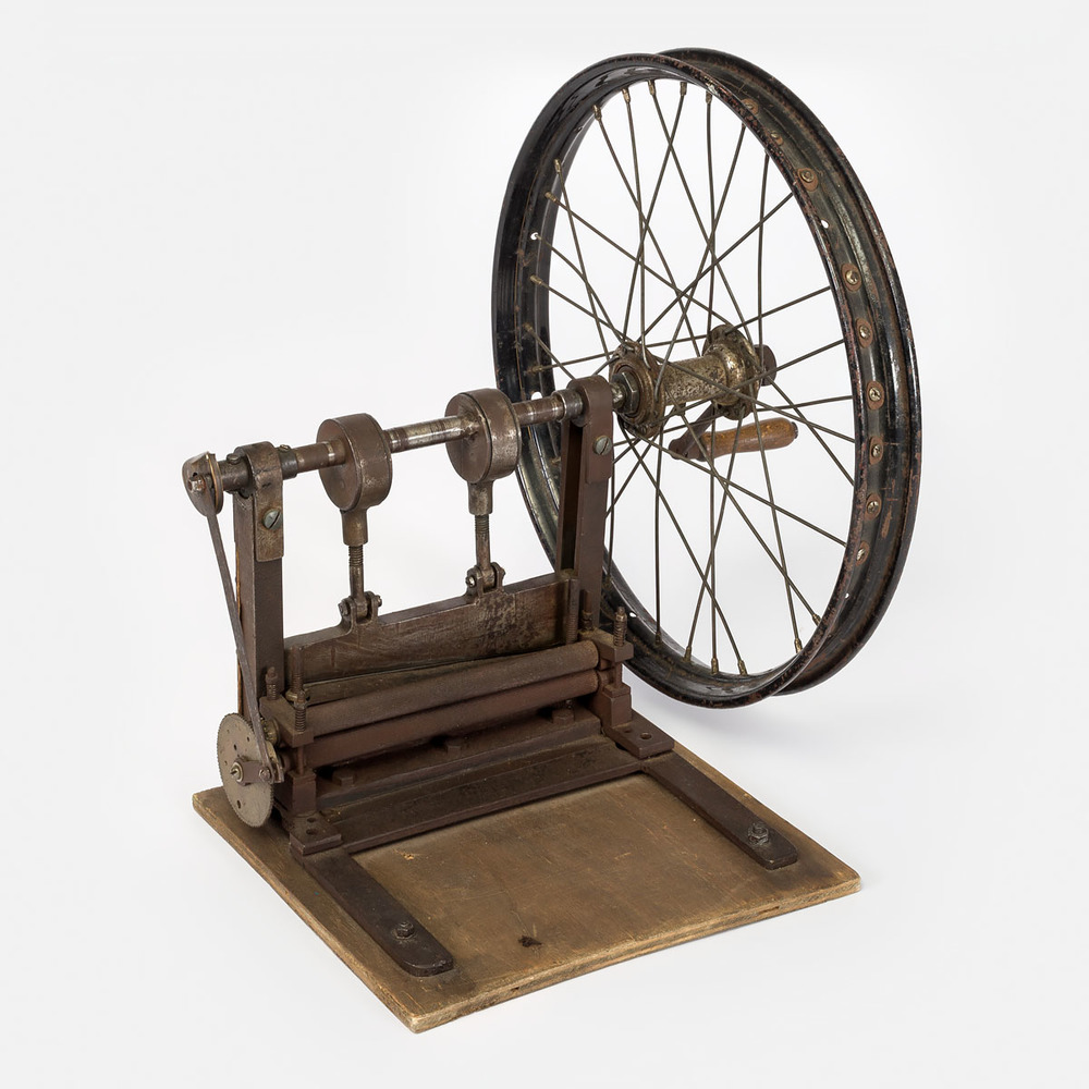tabaksnijder met handwiel van fiets- en auto-onderdelen