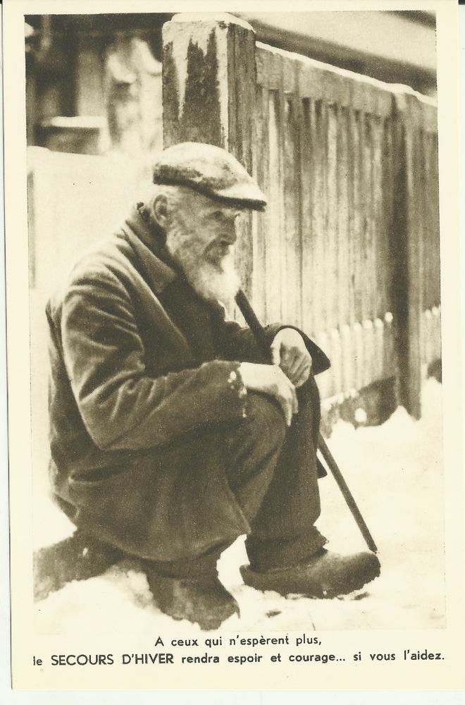Winterhulp - een man zit eenzaam op de stoeprand in ...