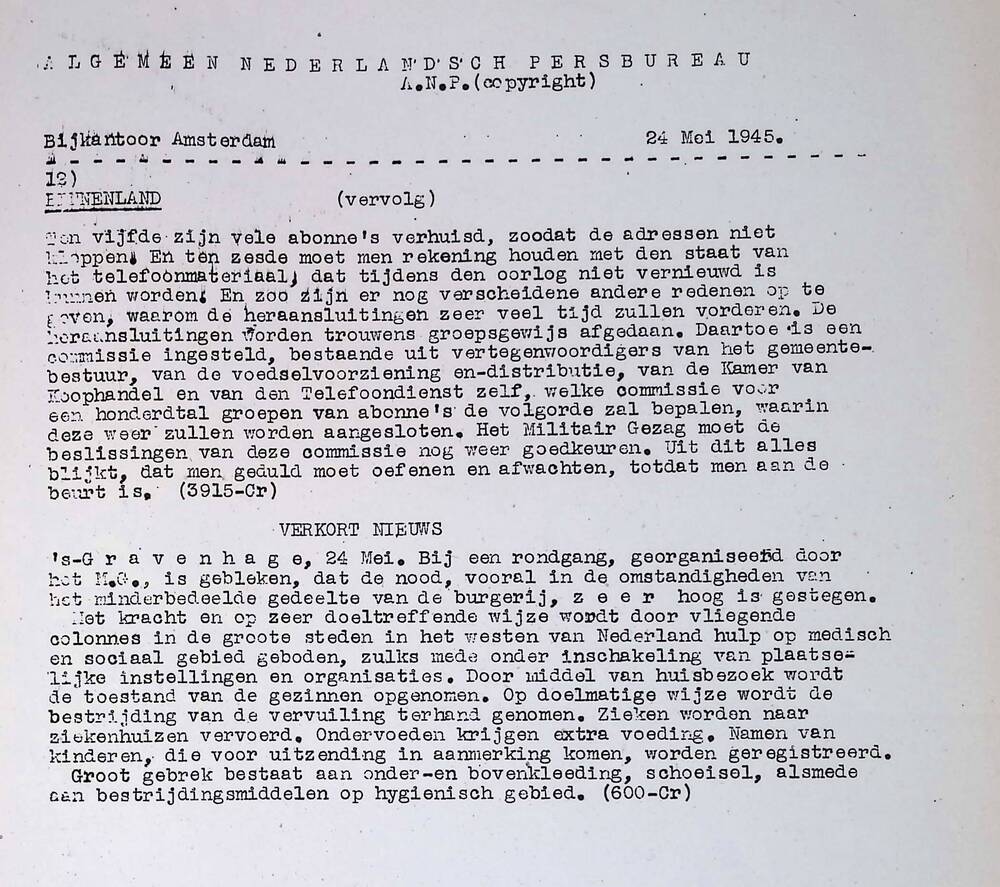 Algemeen Nederlandsch Persbureau, mededelingen, kant...