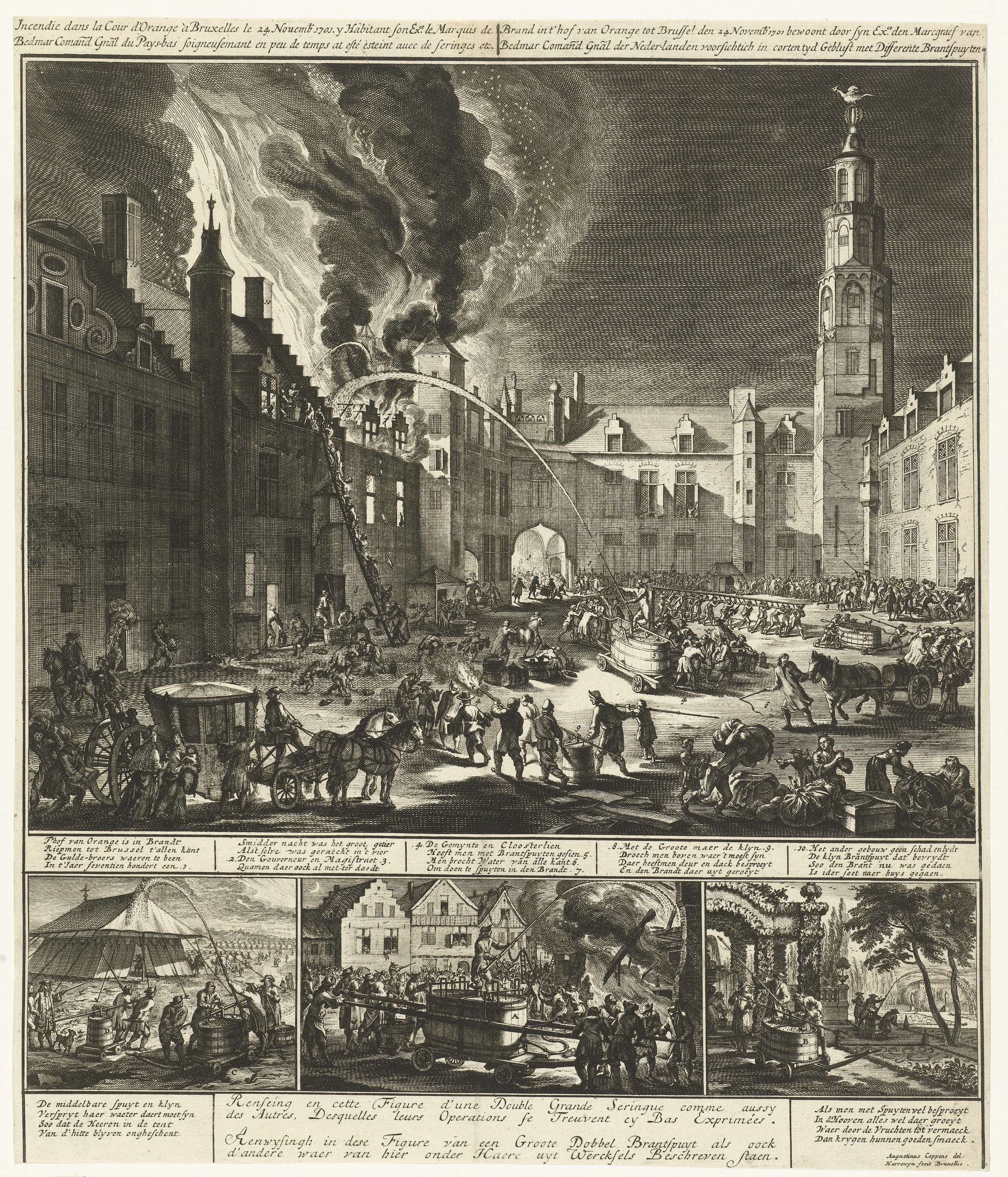 Blussen van de brand in het Hof van Oranje te Brusse...