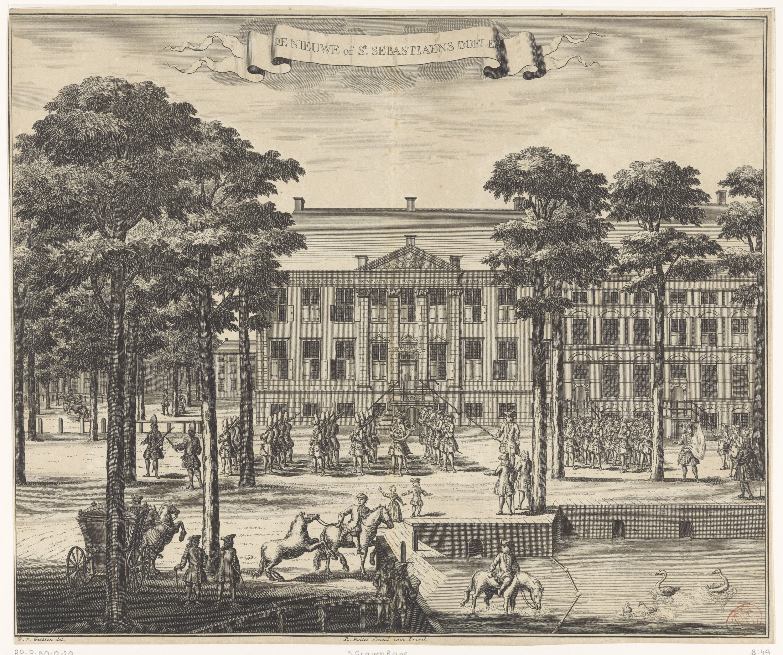 Gezicht op de Sint-Sebastiaansdoelen te Den Haag