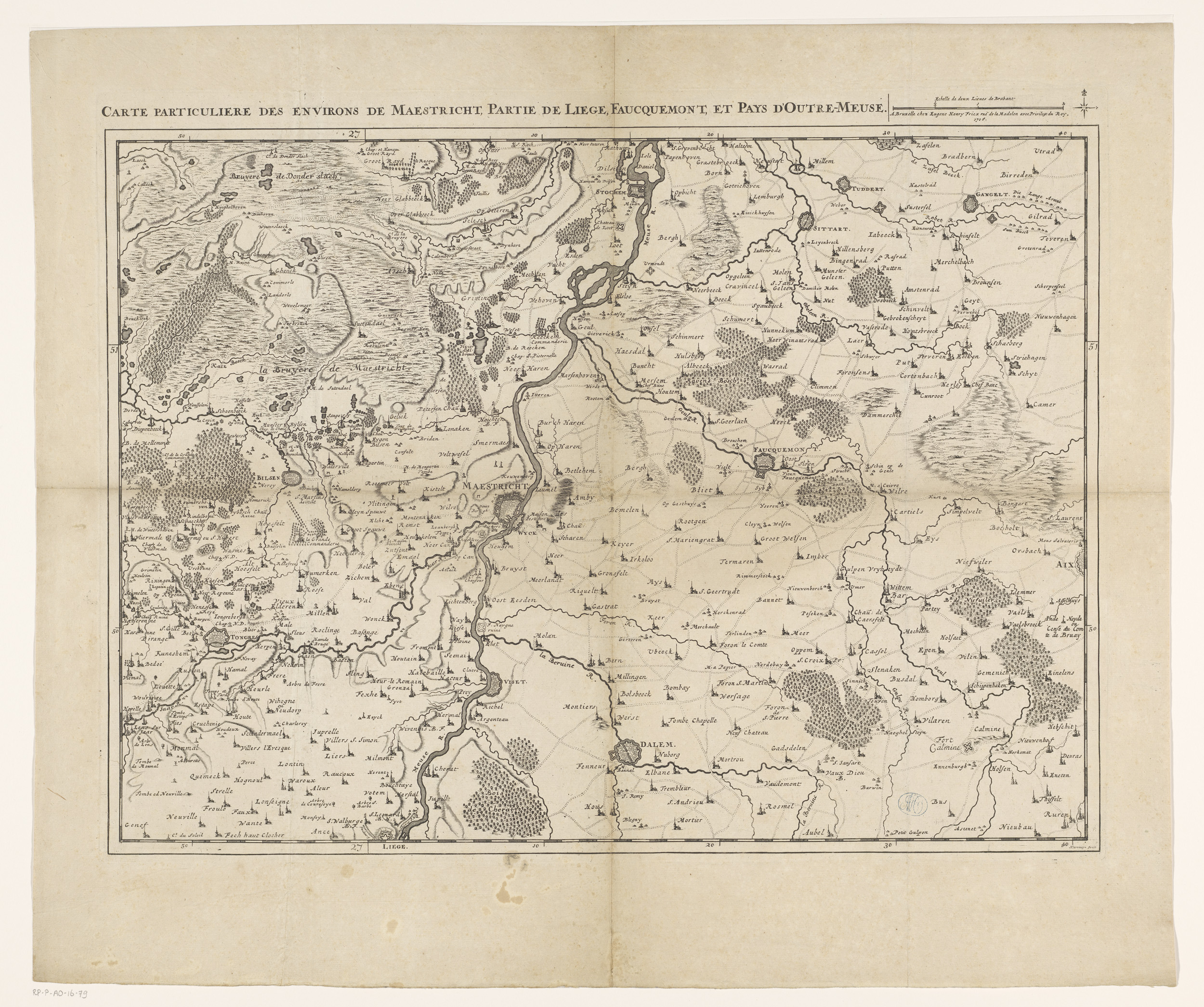 Kaart van Limburg met de omgeving rond Maastricht, 1708