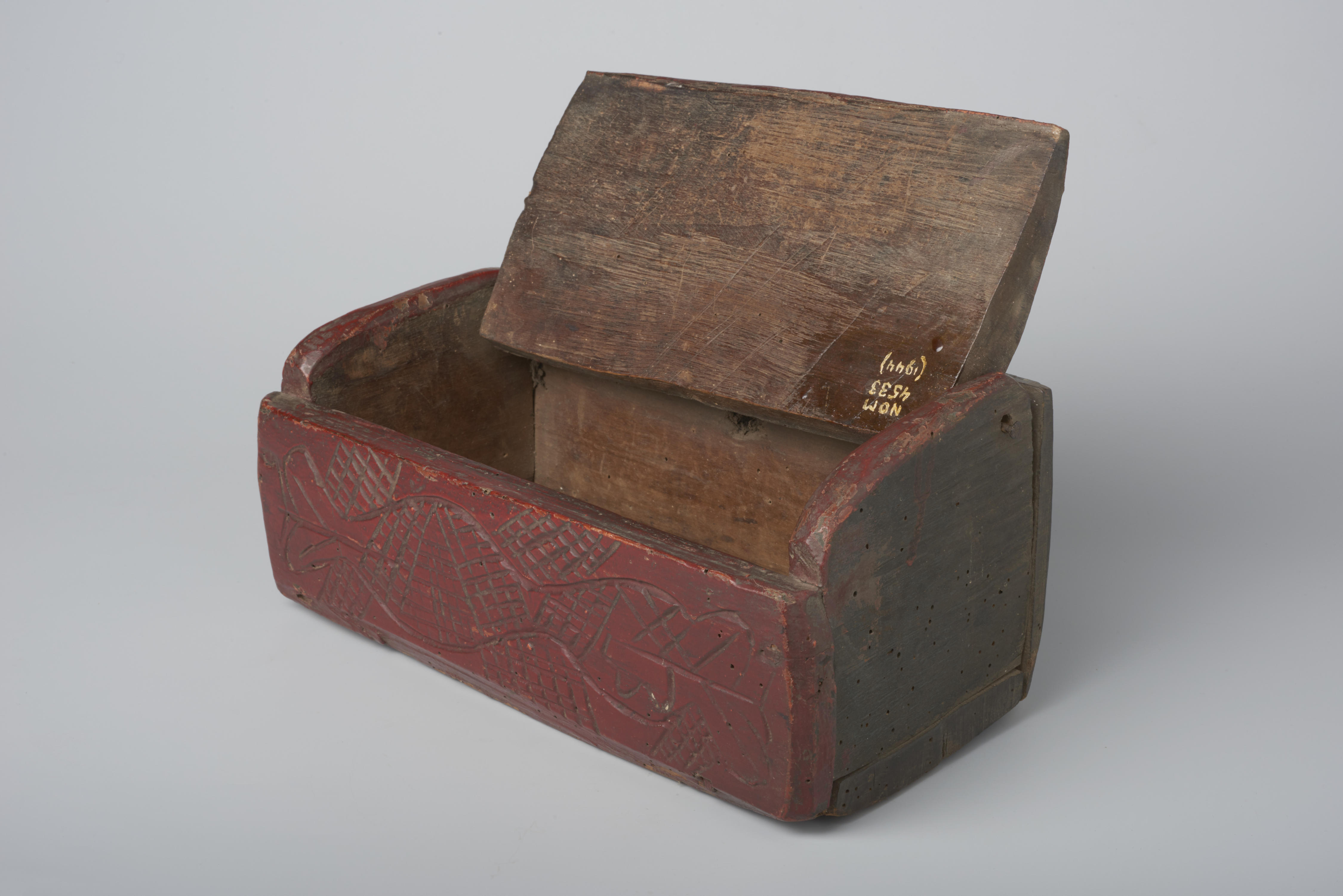Houten kist, zogenoemde naai- en stopbak, Staphorst