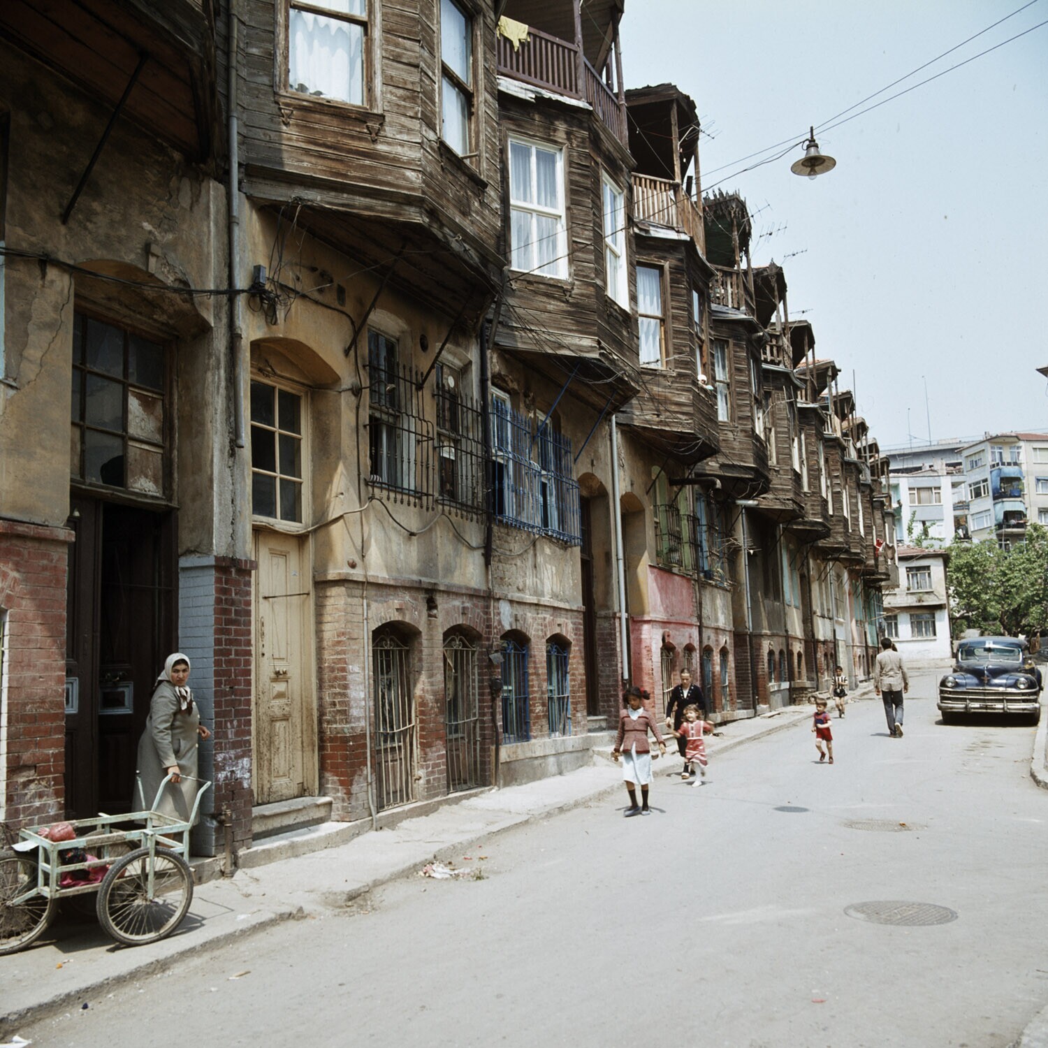 Istanbul, oude houten woningen op een rij Dit zijn d...