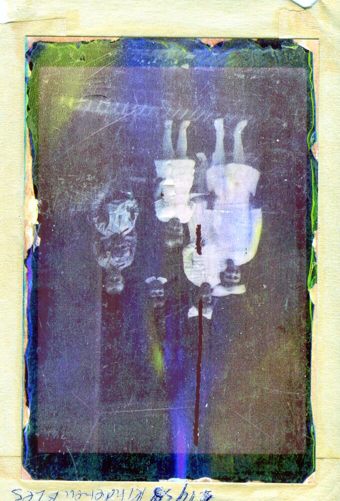 Langwerpige spiegel van glas met tekst ca. 1970-2005