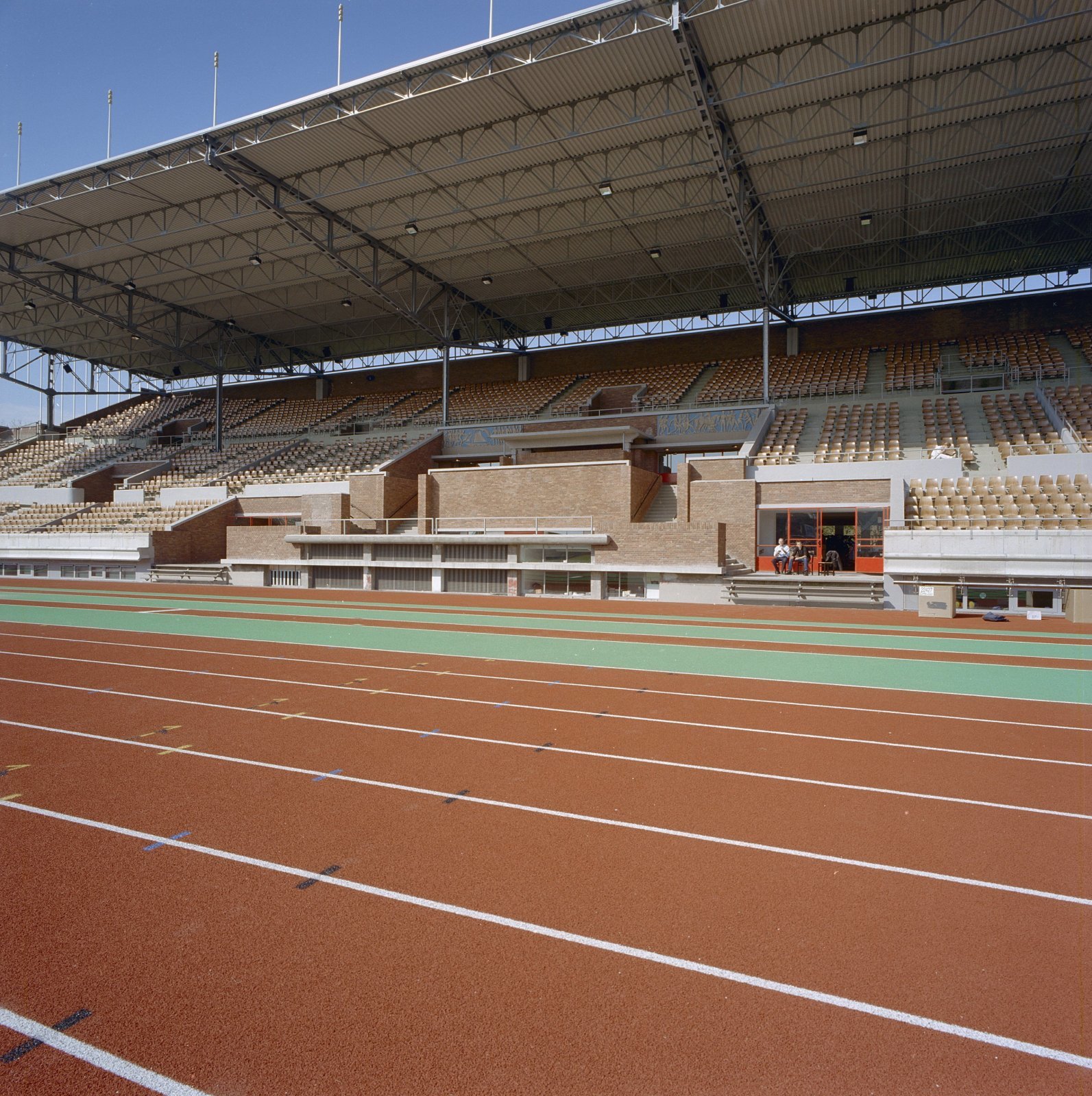 Interieur, gedeelte sintelbaan, hoofdtribune, na de ...