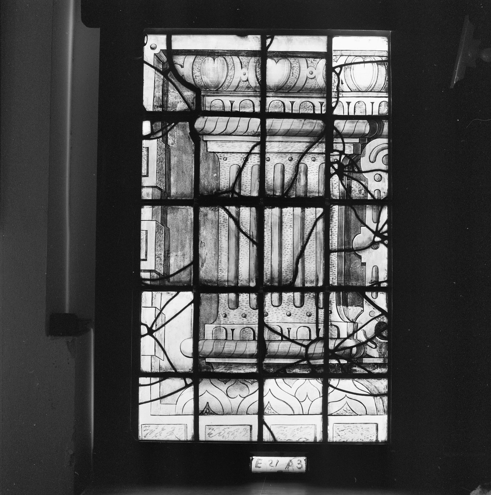 Interieur, glas in loodraam, NA REINIGING IN ATELIER...