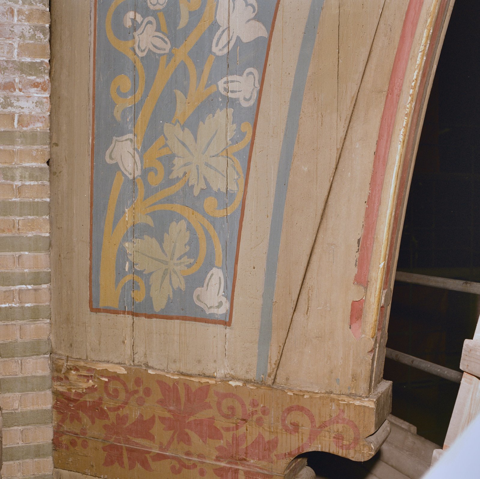 Interieur, restanten van houten montants in oostelij...