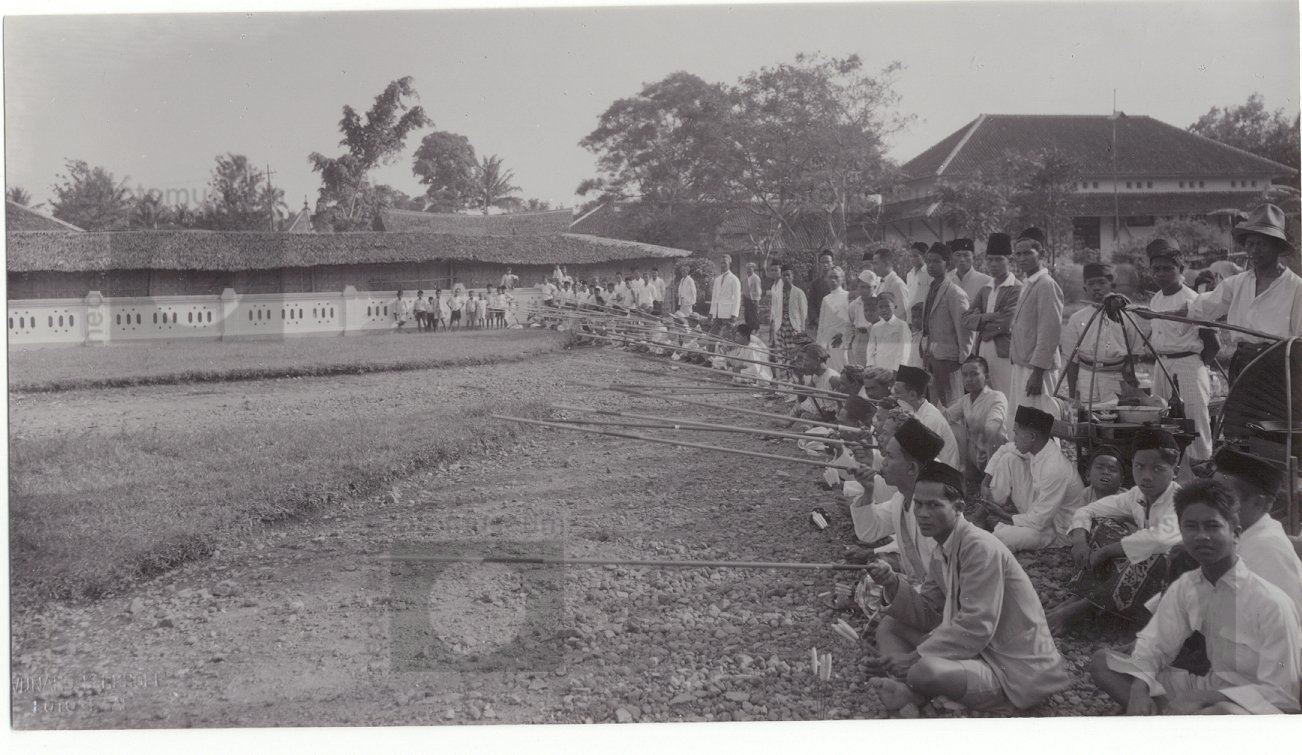 Wedstrijd met blaaspijpen, Java, Indonesië (1919-1930)