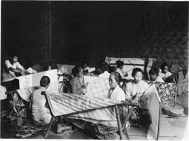 Het batikken van kains, Java, Indonesië (1919-1930)