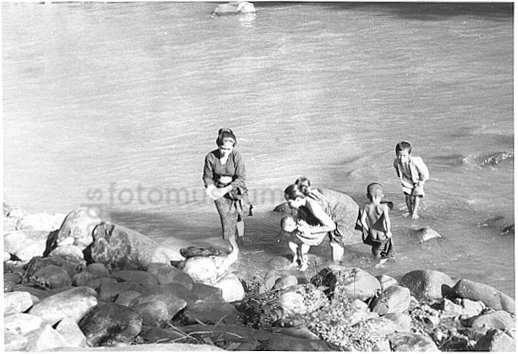 Badui wassen in de rivier, Java, Indonesië (ca. 1968)