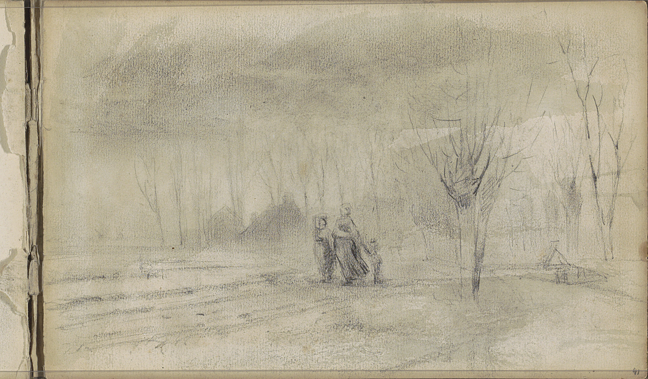 Studieblad, onder andere met een ophaalbrug bij Schi...