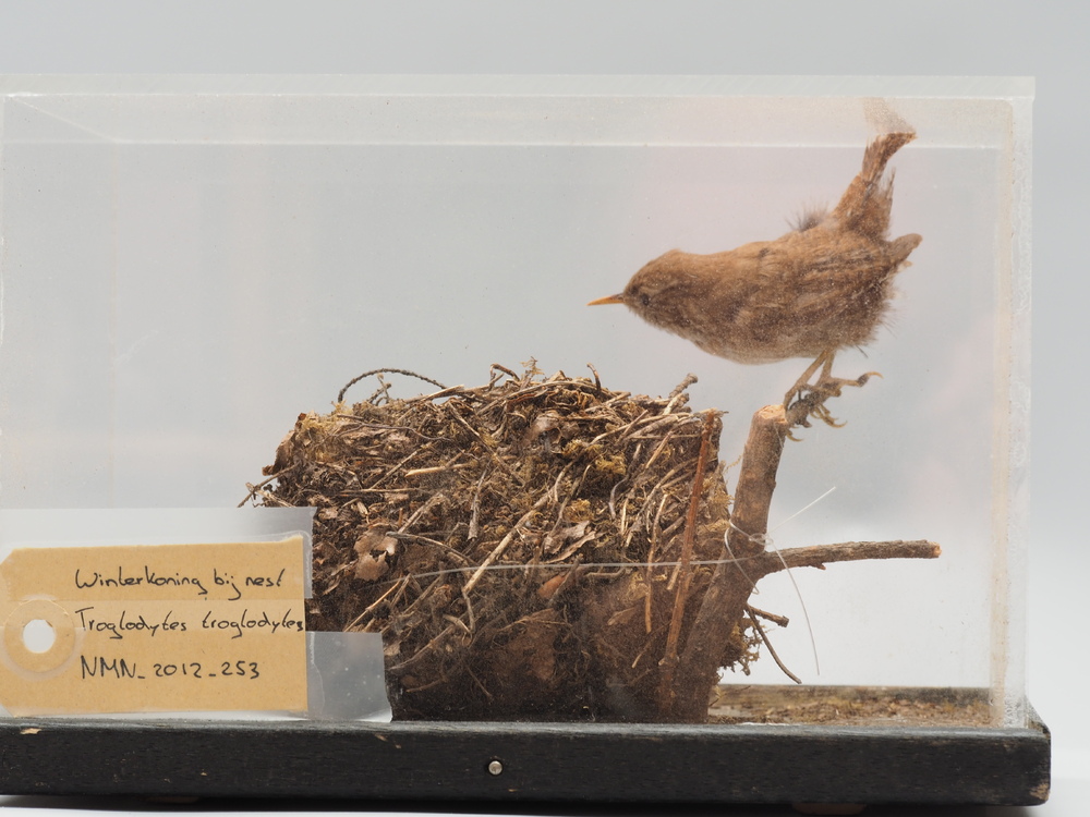 Winterkoning met nest; diorama