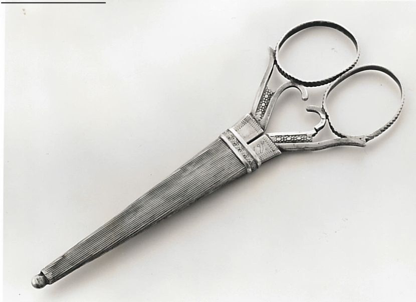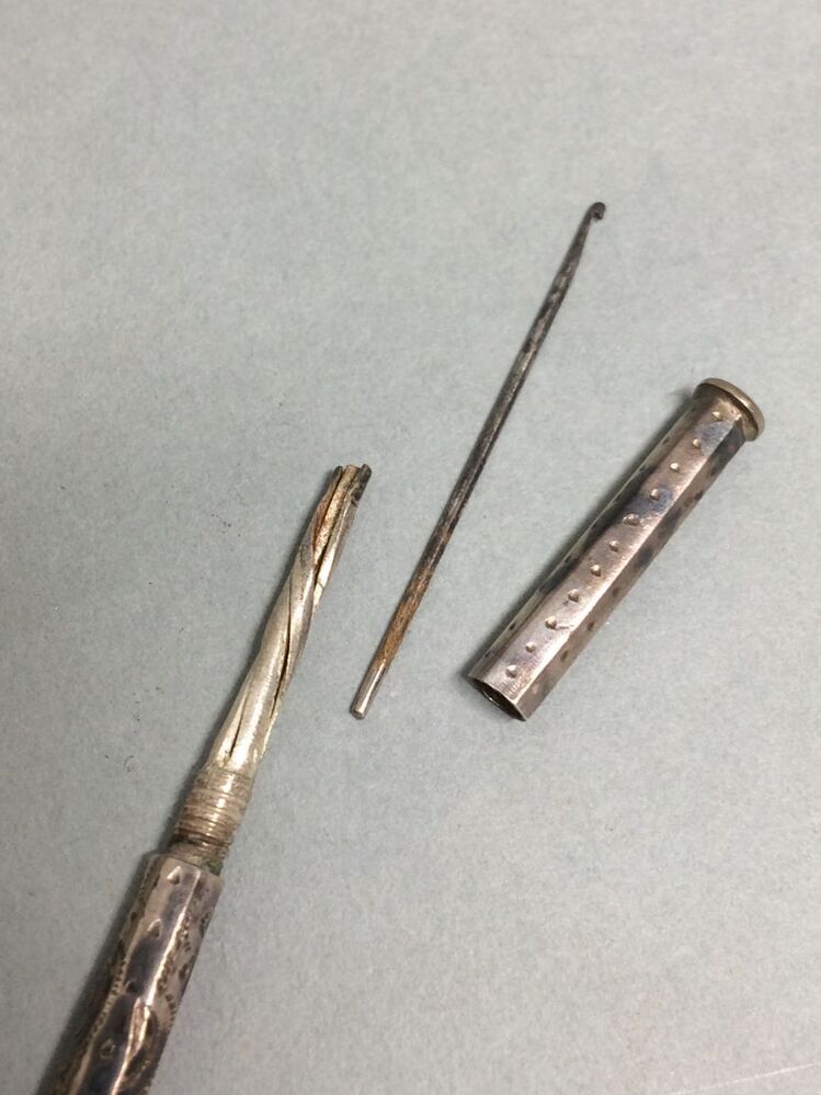 Platte rijgnaald met smal oog en eenvoudige versiering