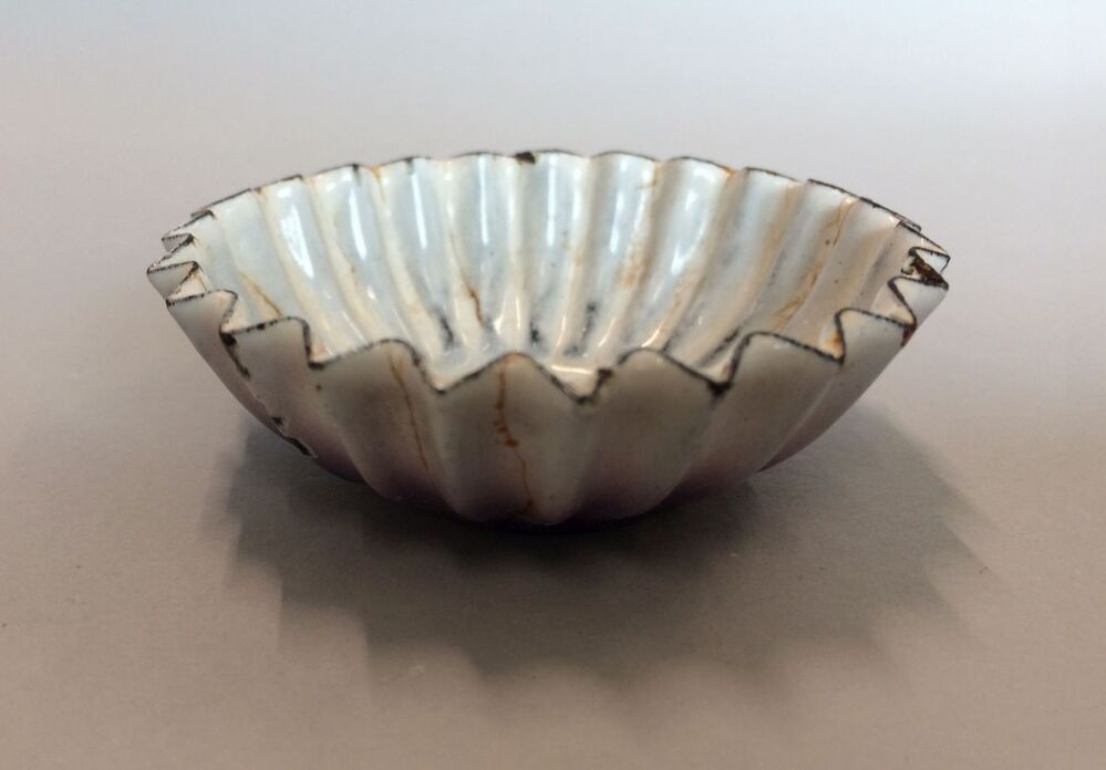 Witte bakvorm met geschulpte rand, onderkant is gede...