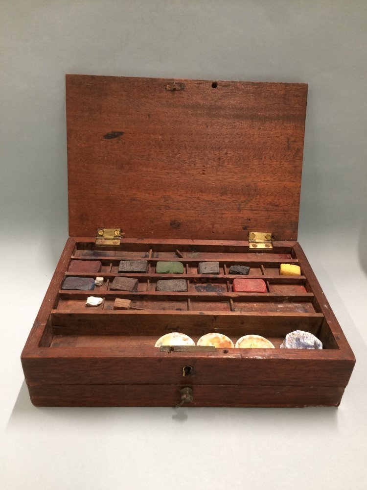 Verfdoos met blokjes verf, houten kistje met extra l...