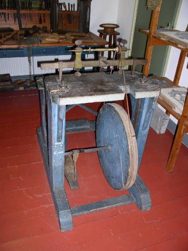 Trap draaibank voor het draaien van klokkenonderdelen.