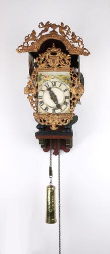 Stoelklok met verguld loden bekroning met wapen, ca....