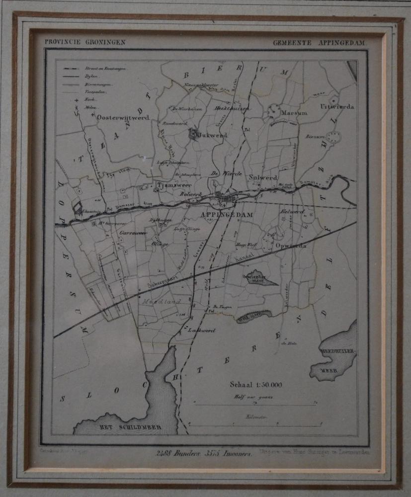 Prent van plattegrond gemeente Appingedam