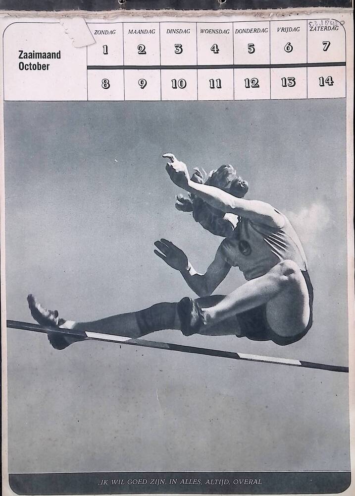 Kalender van de Nationale Jeugdstorm. Afgescheurd op...