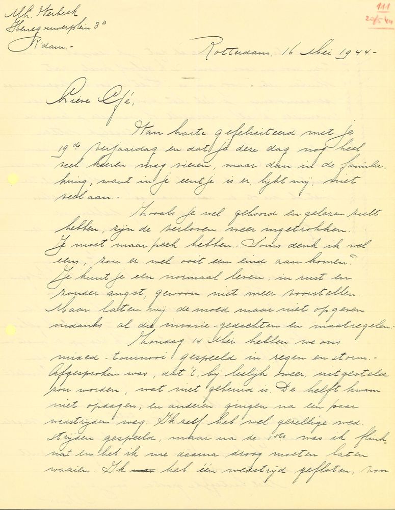 Brief van Mies in Rotterdam aan Gé Verbeek in Watens...