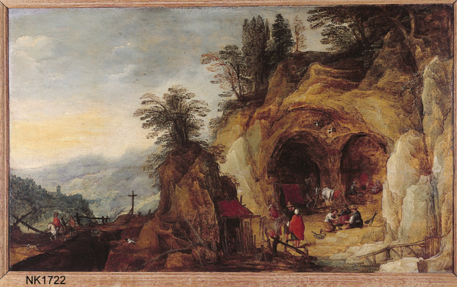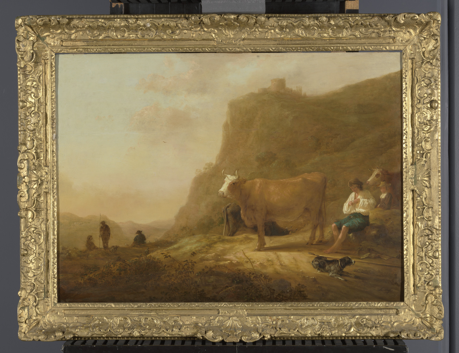 Heuvelachtig landschap met reizigers, herders en vee