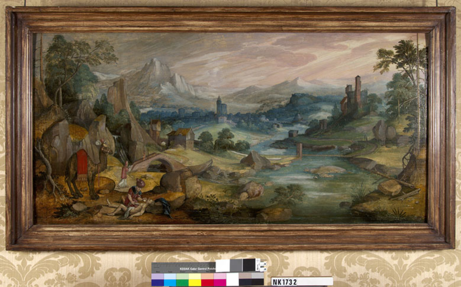 Heuvelachtig rivierlandschap met de barmhartige Sama...