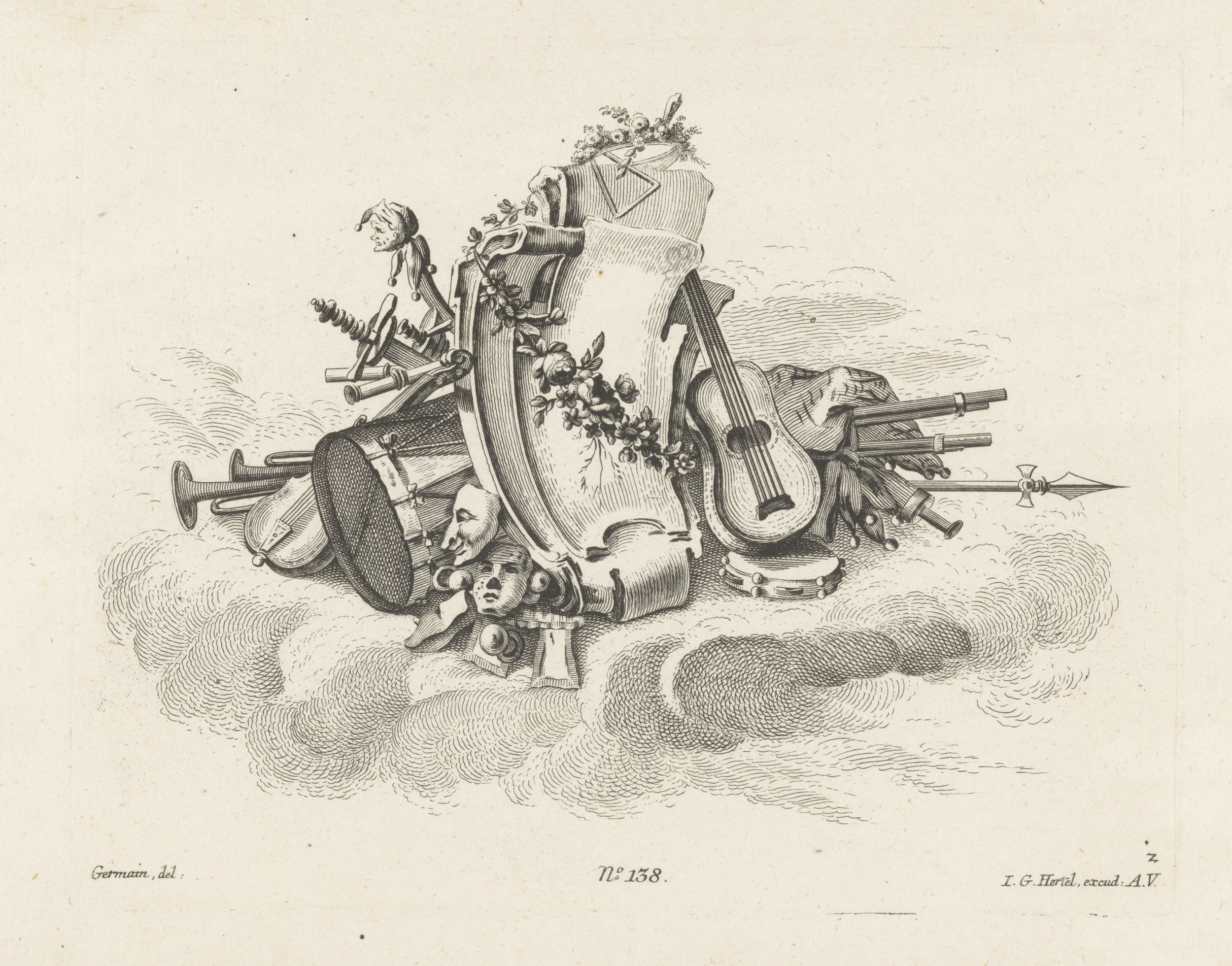 Cartouche met muziekinstrumenten