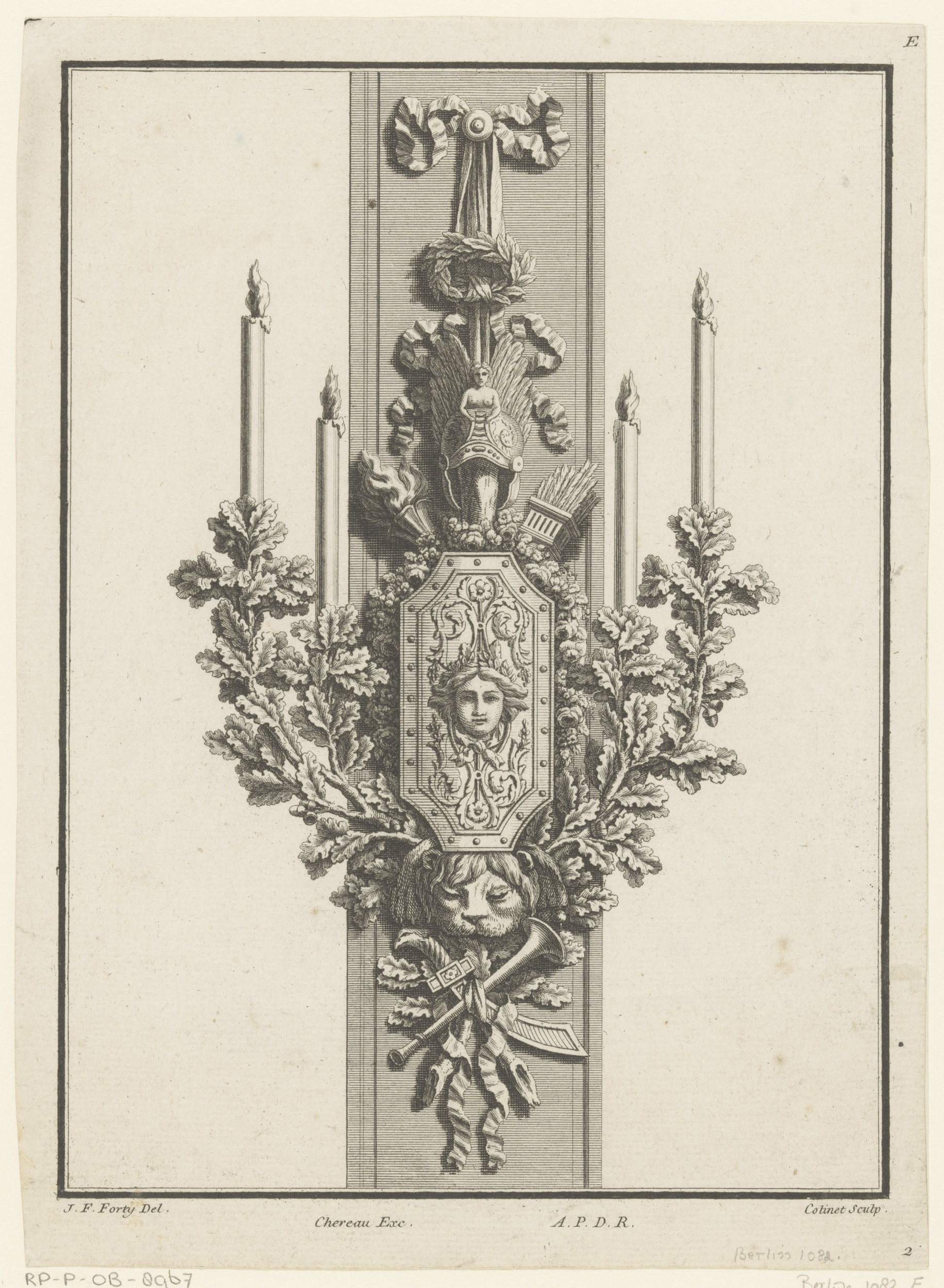 Arabesken met fakkel, vogels, pijlen en caduceus
