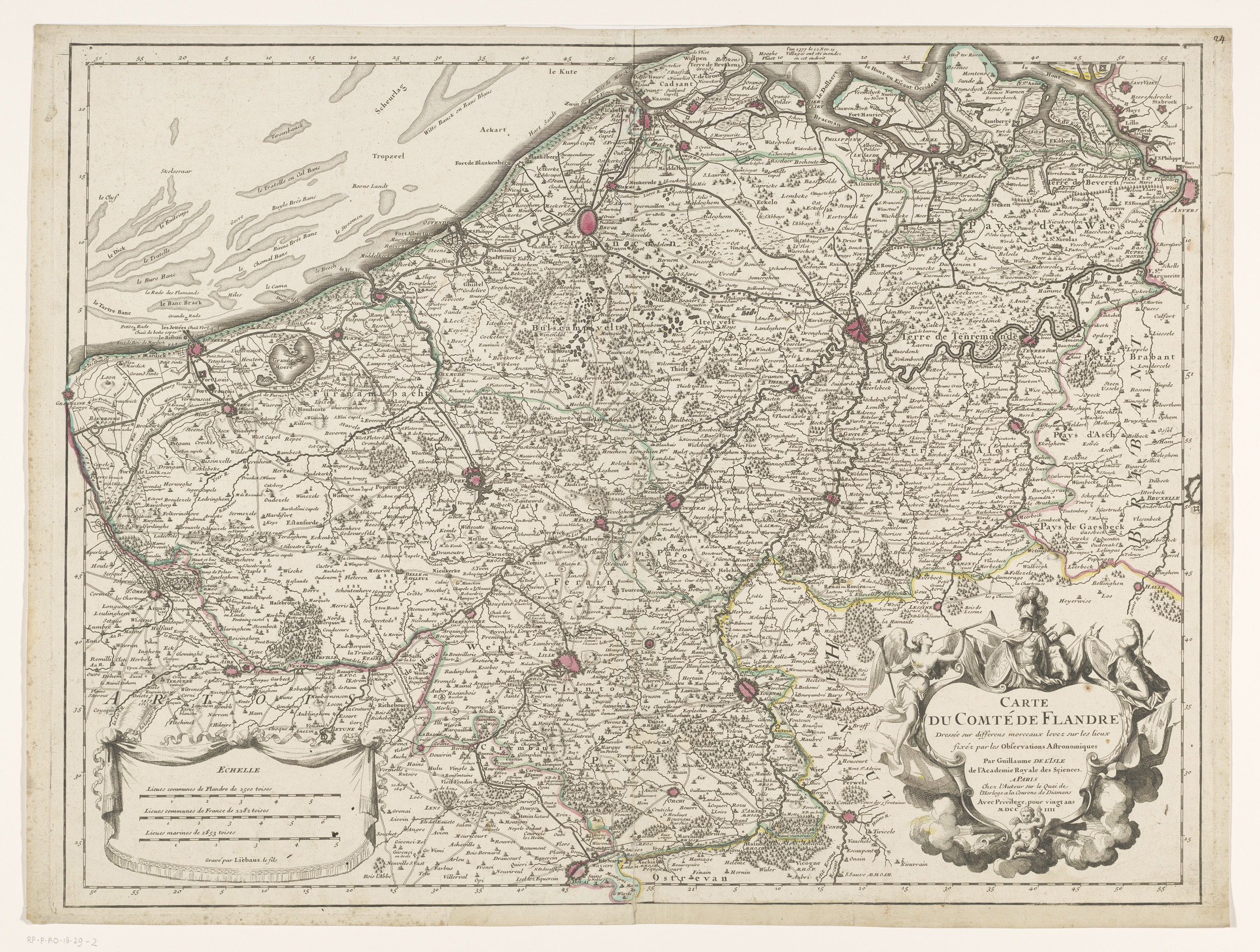 Kaart van het graafschap Vlaanderen (linkerdeel)