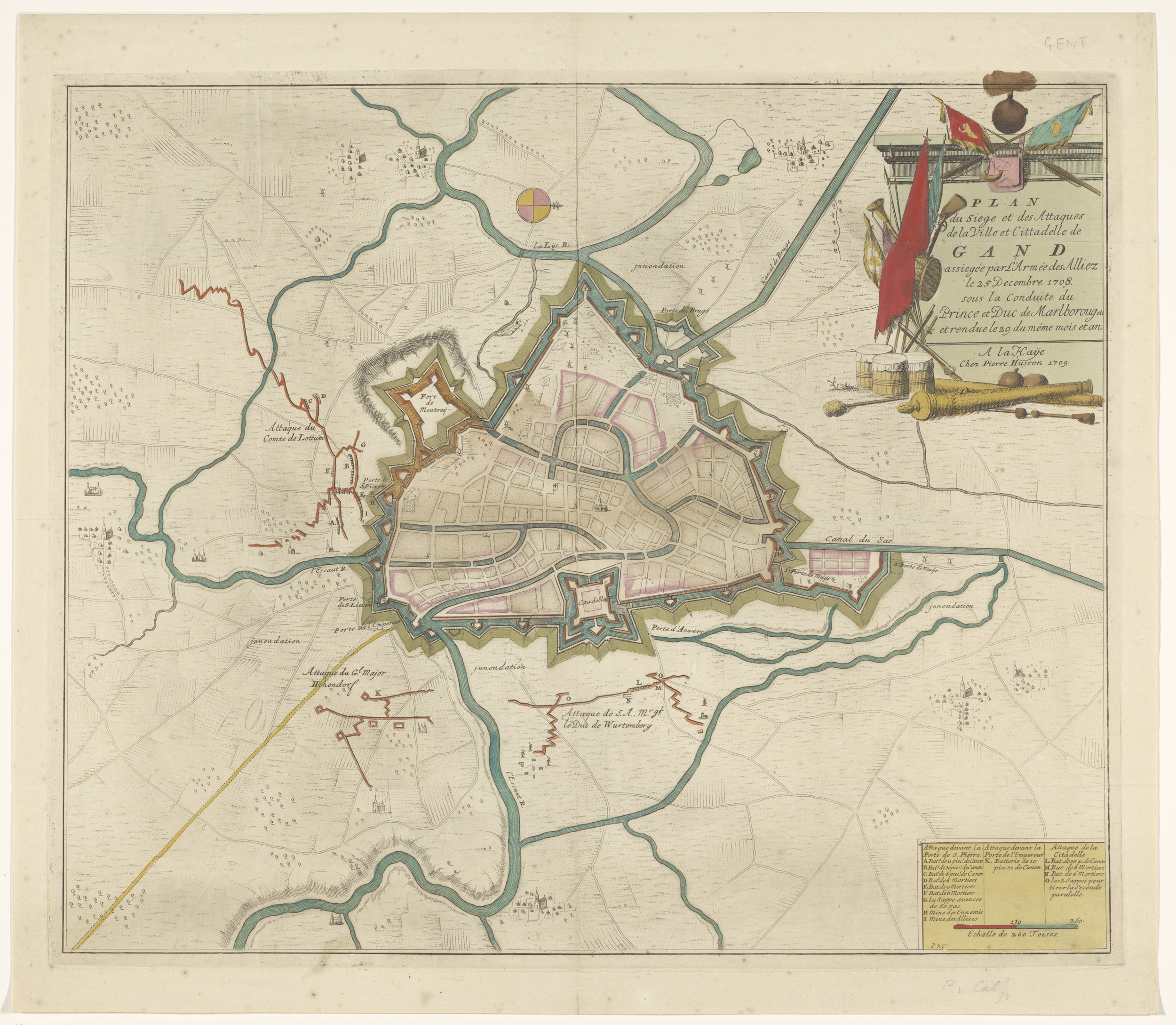 Plan van het beleg van Gent, 1708