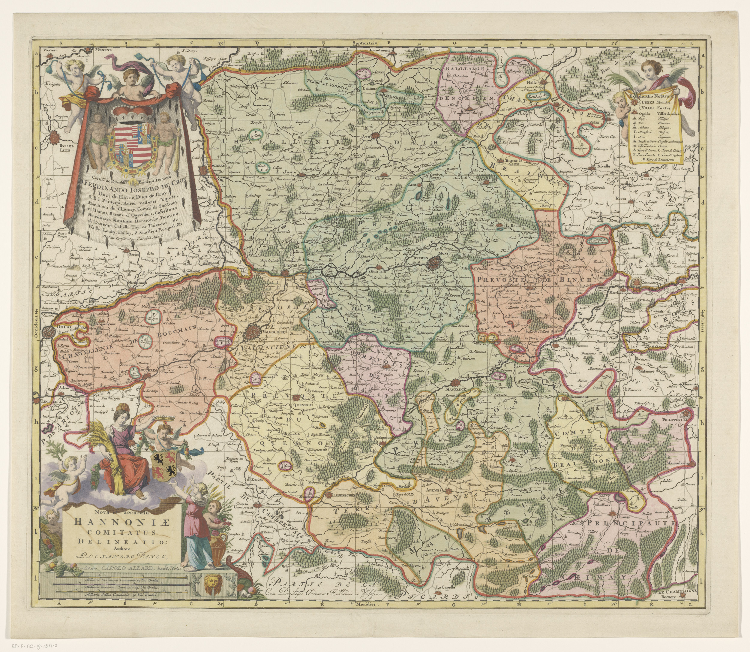 Kaart van de graafschappen Henegouwen en Namen