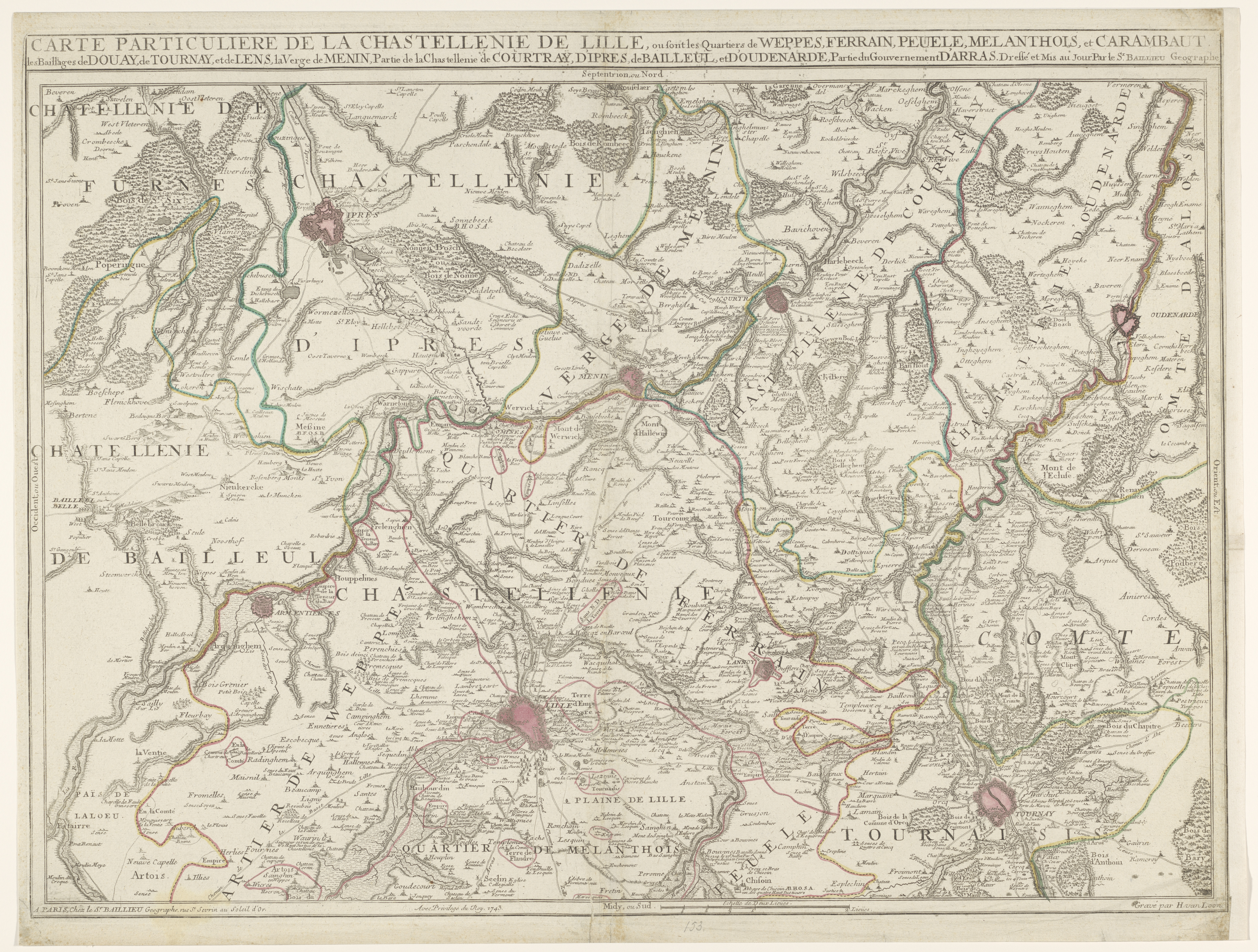 Kaart van de kasselrij Rijsel