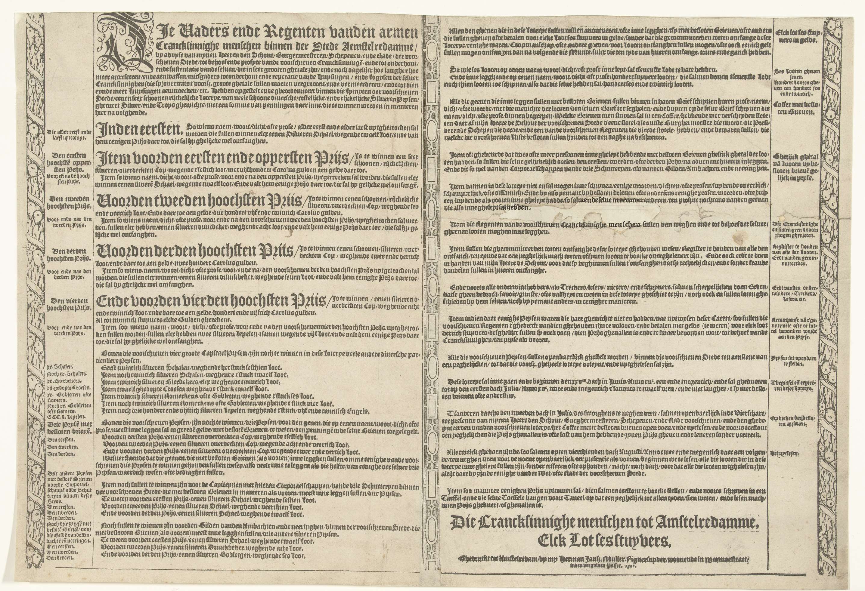 Loterijprent voor het Dolhuis te Amsterdam