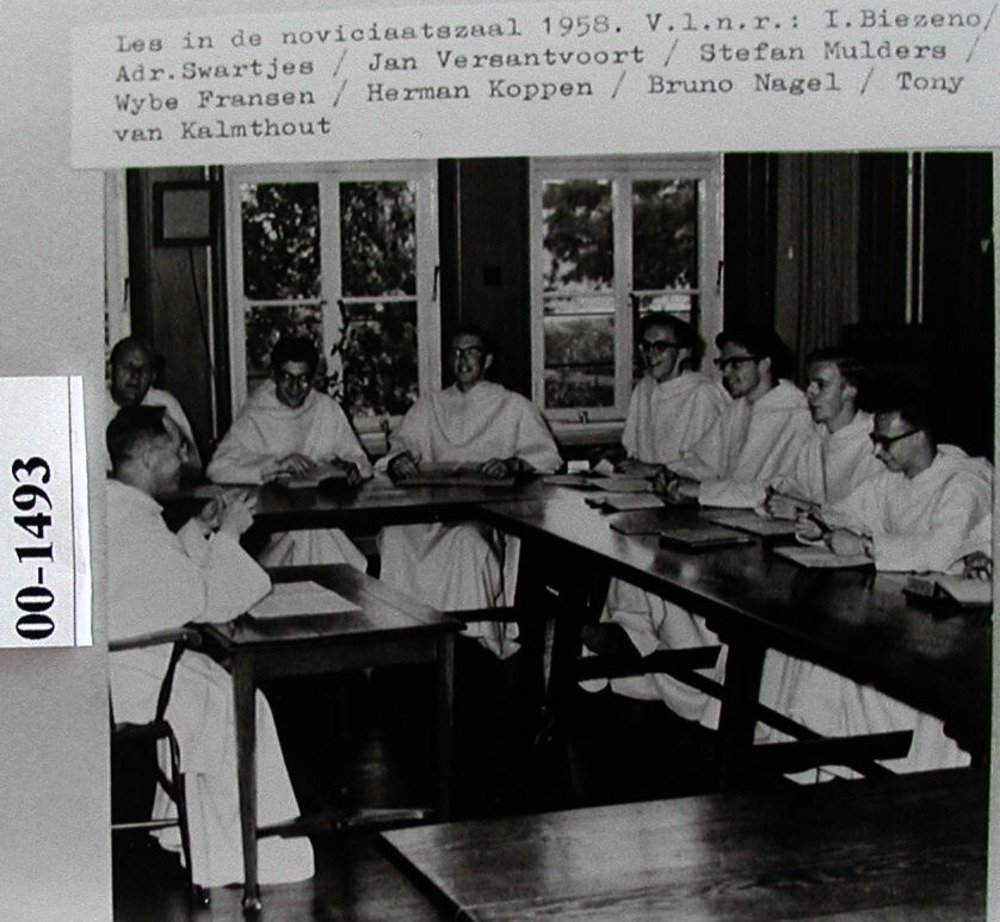 Zwart-wit foto van een klassenfoto van het basisonde...