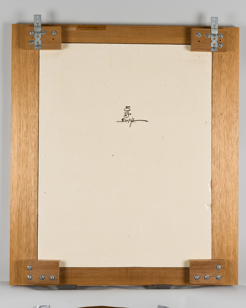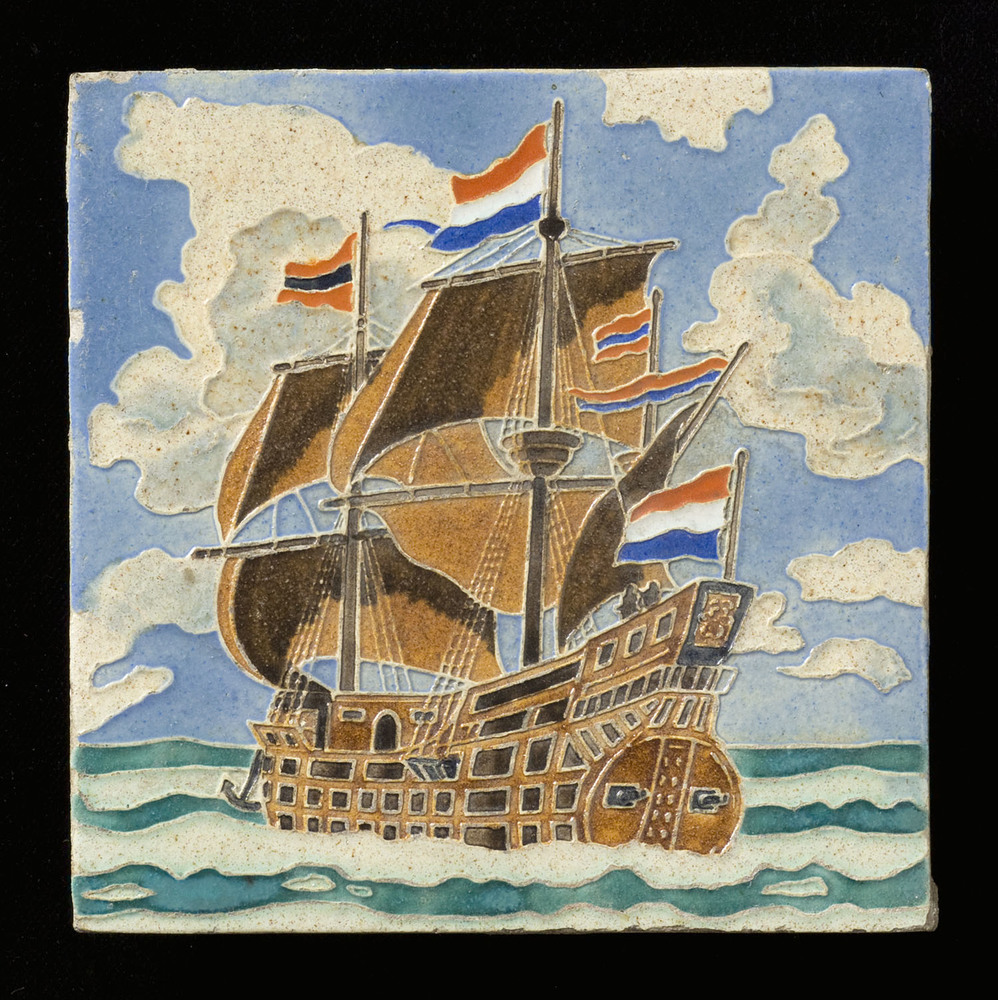 tegel van keramiek met tinglazuur, voorstellende: dr...