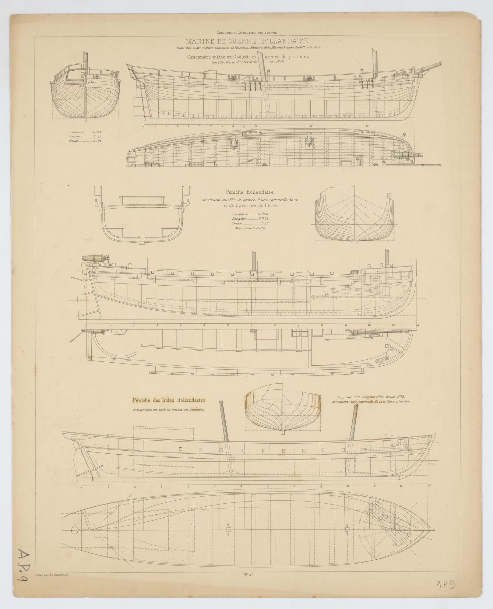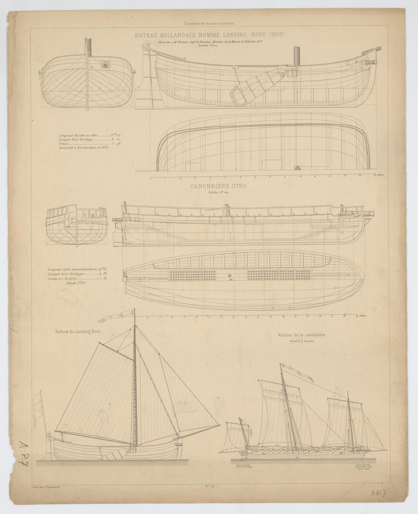 Zijaanzicht en achteraanzicht van het schip 'Boekenr...
