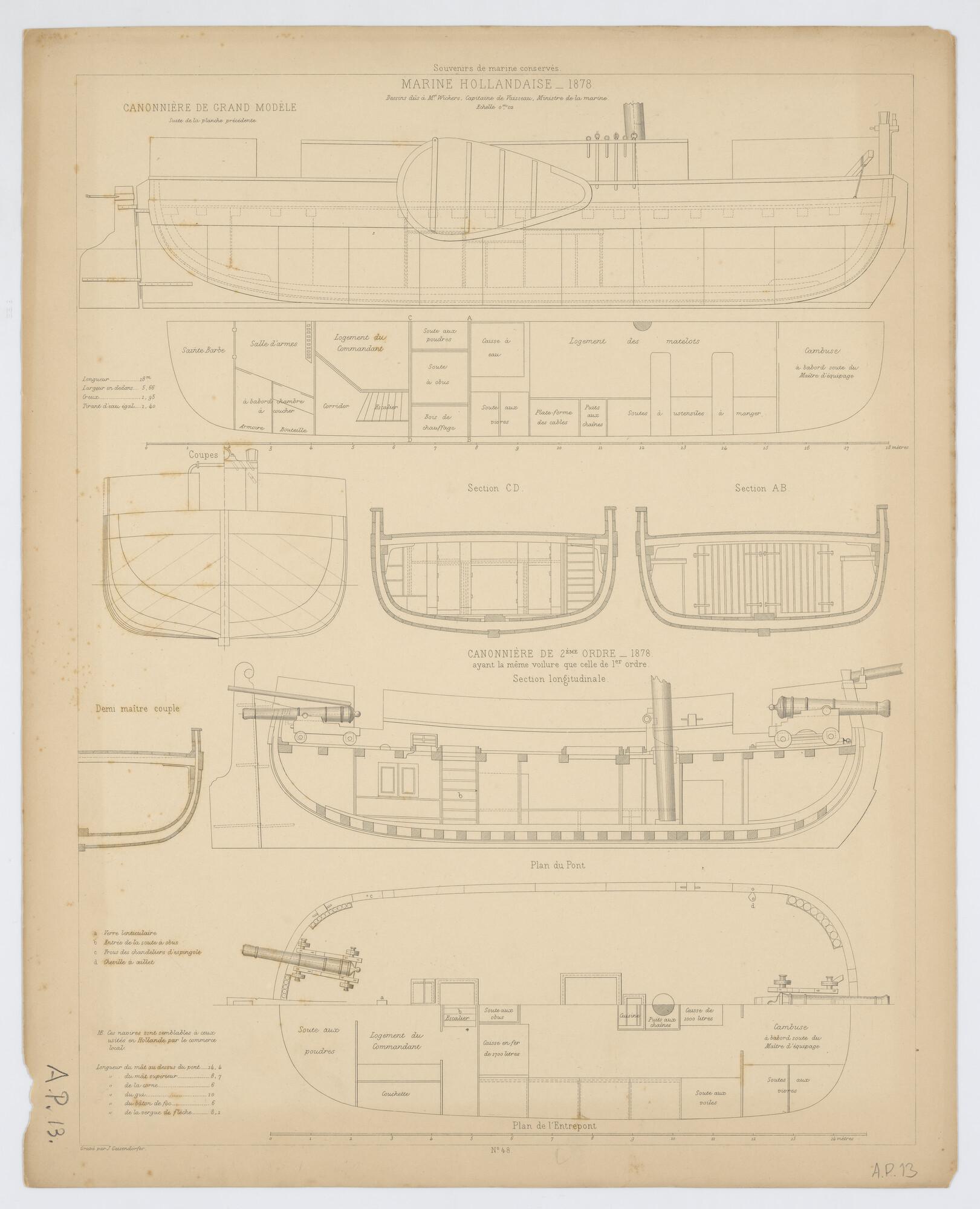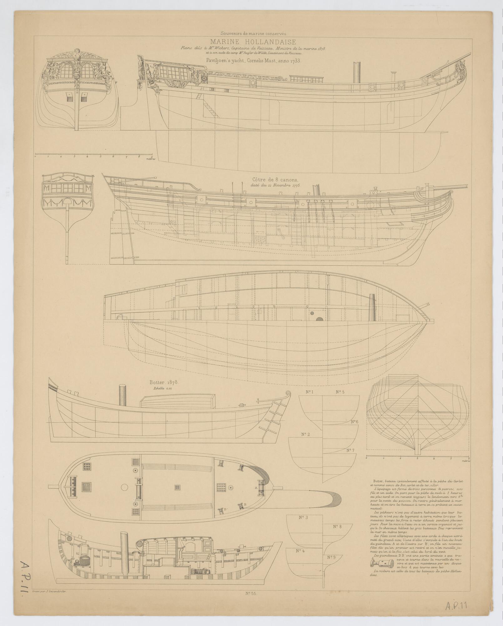 Lijnenplan, spantenraam, grootspant en zeilplan van ...