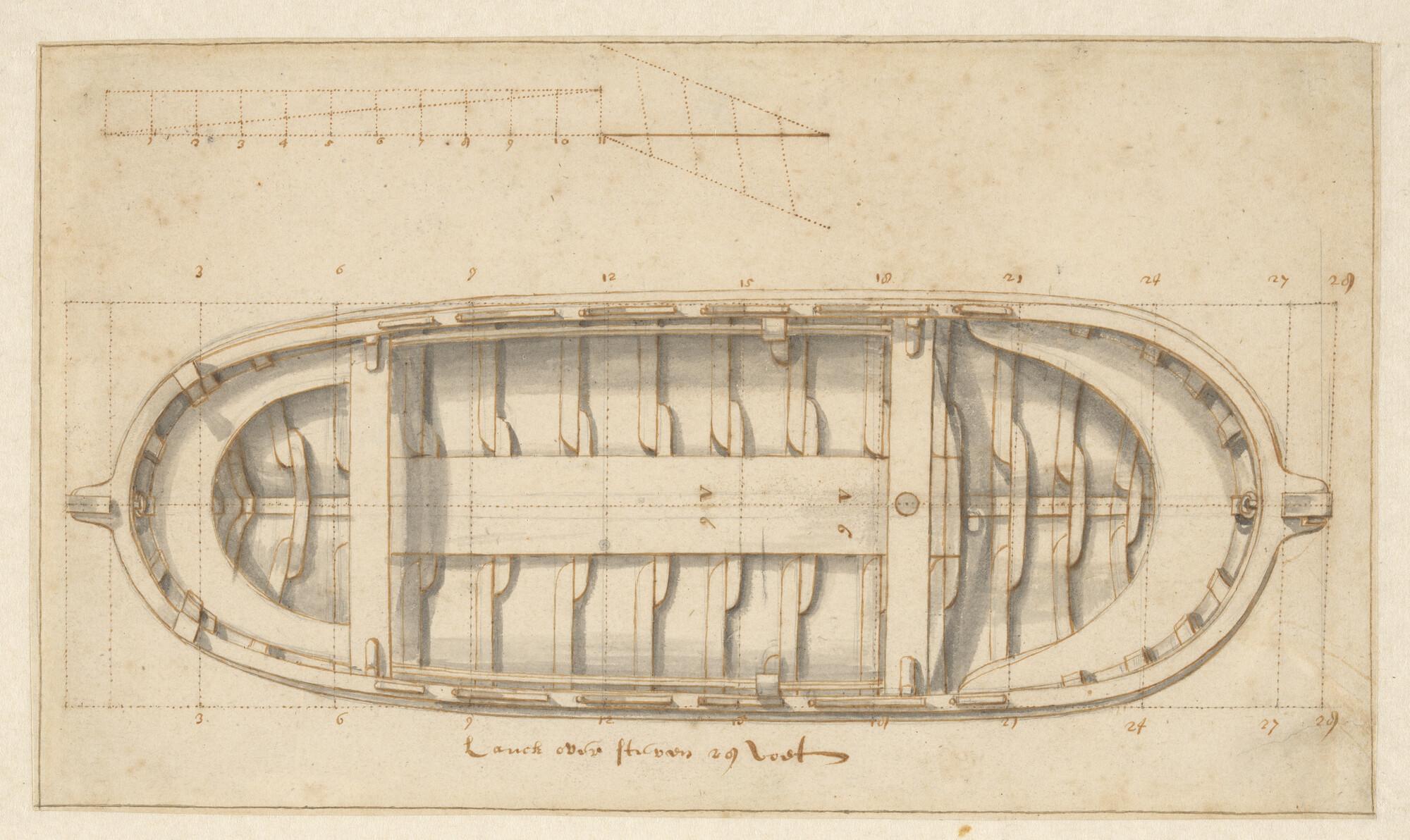 Achter- en bovenaanzicht, grootspant, spantenraam va...