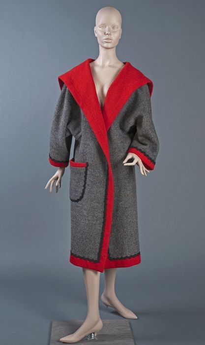 Jas van grijs-rode double-face wollen stof, met zwar...
