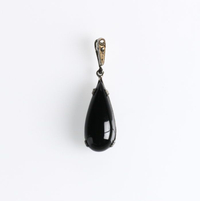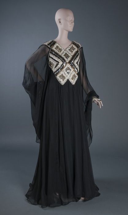 Voetlange ruimvallende avondjapon van zwart organza,...