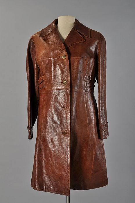 Knielange gerende jas van bruin leer