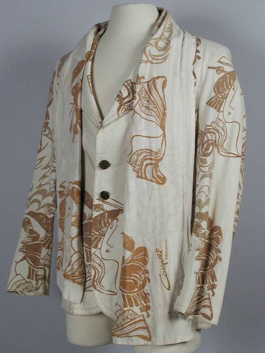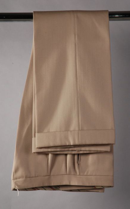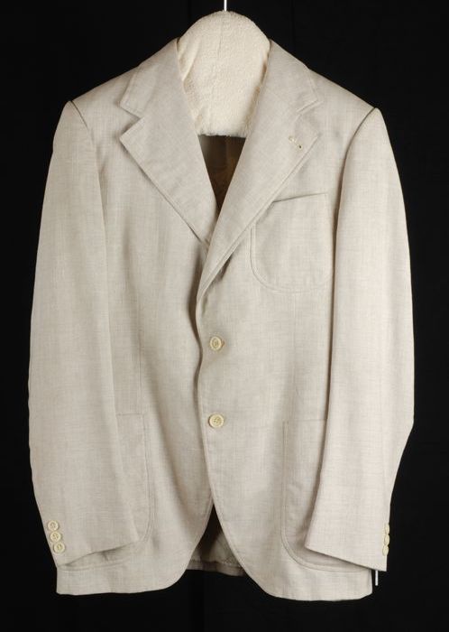 Tweedelig kostuum: broek en colbertjas van beige zij...