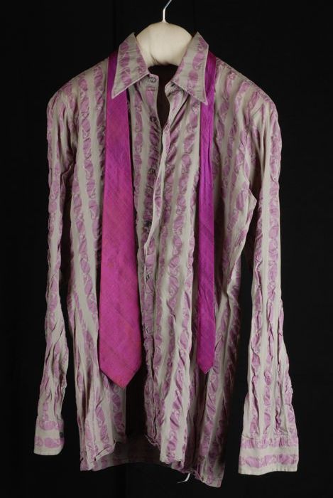 Overhemd van grijze zijde met opgedrukte roze paisle...