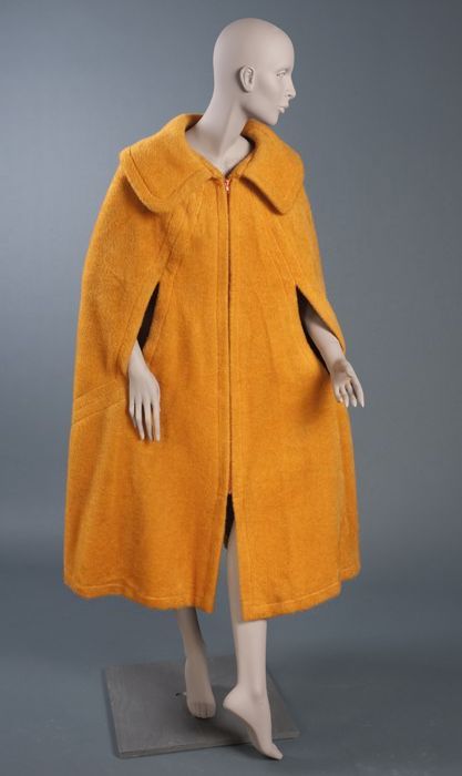 Kuitlange gerende cape van oranje teddy-achtige stof...
