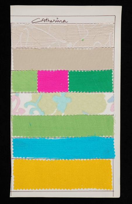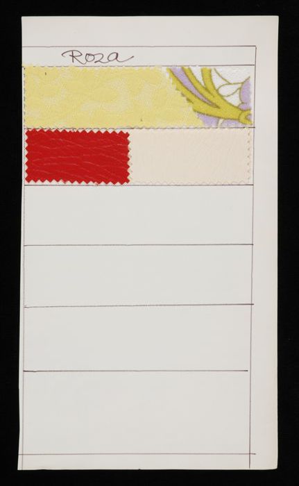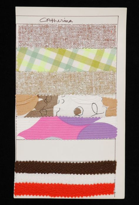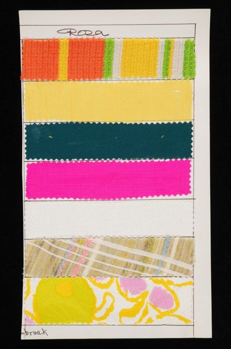 Stalenblad met vijf opgeplakte stoffen van de collec...