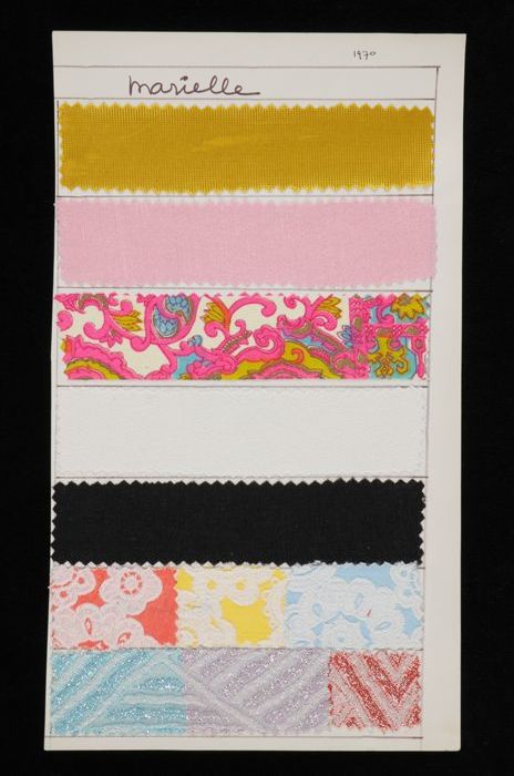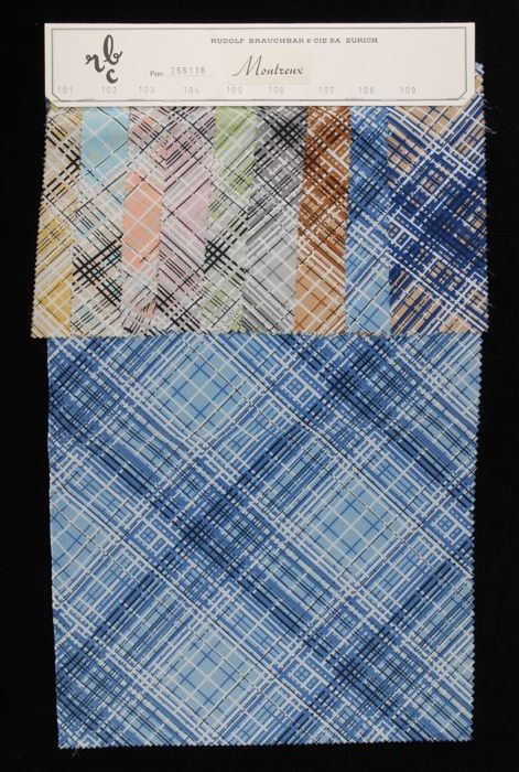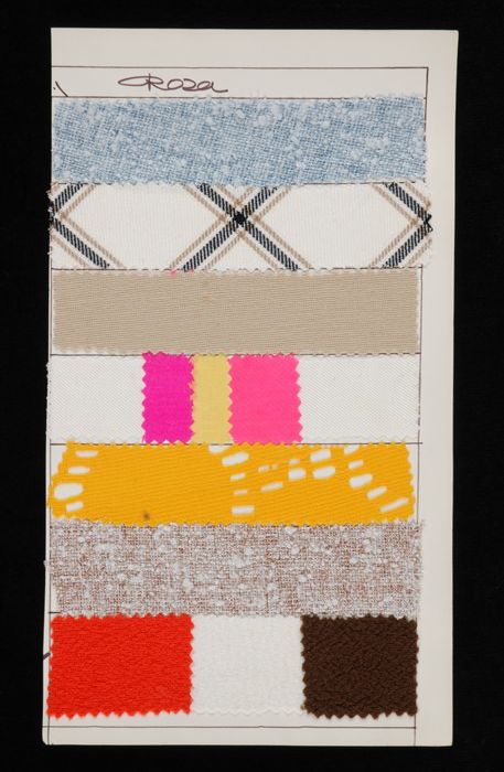 Stalenblad met zes opgeplakte stoffen van de collect...