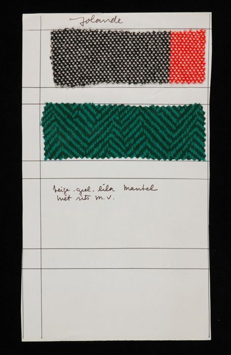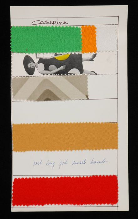 Stalenblad met twee opgeplakte stoffen van de collec...