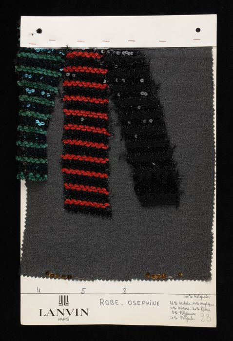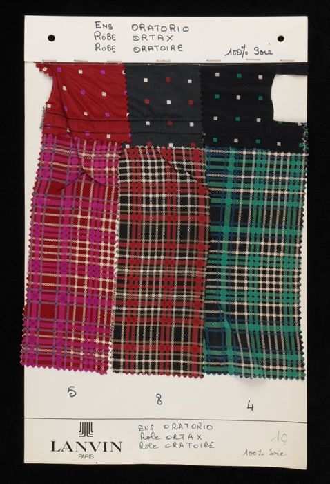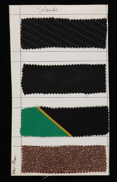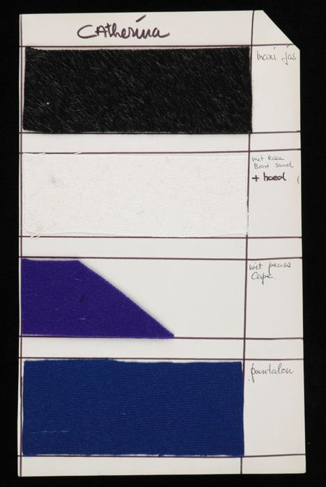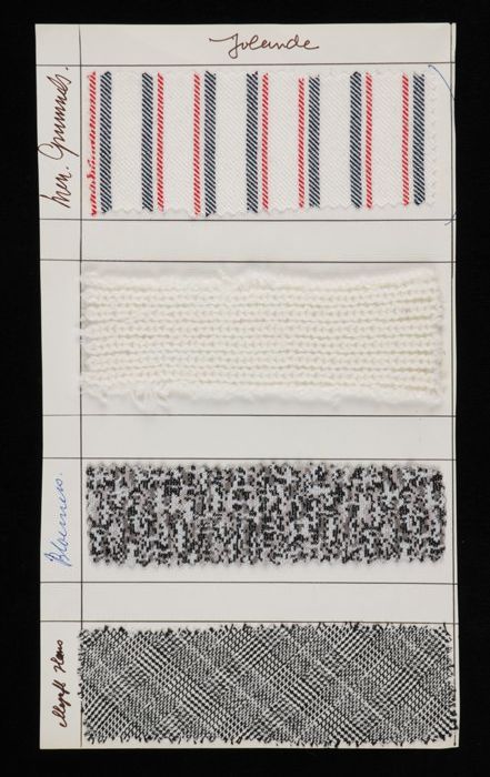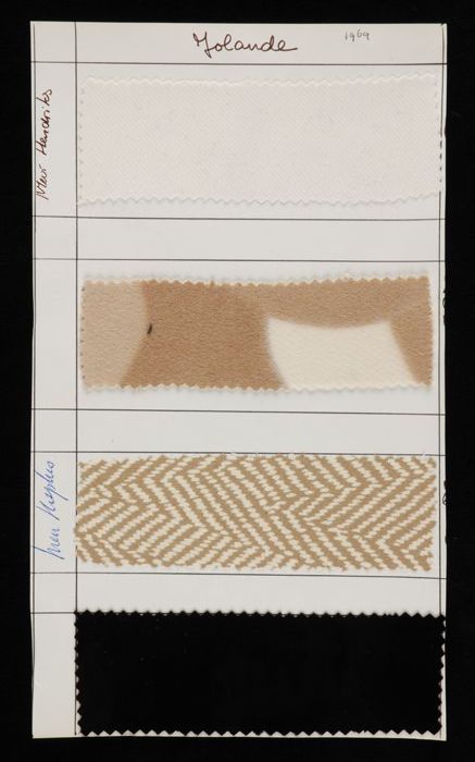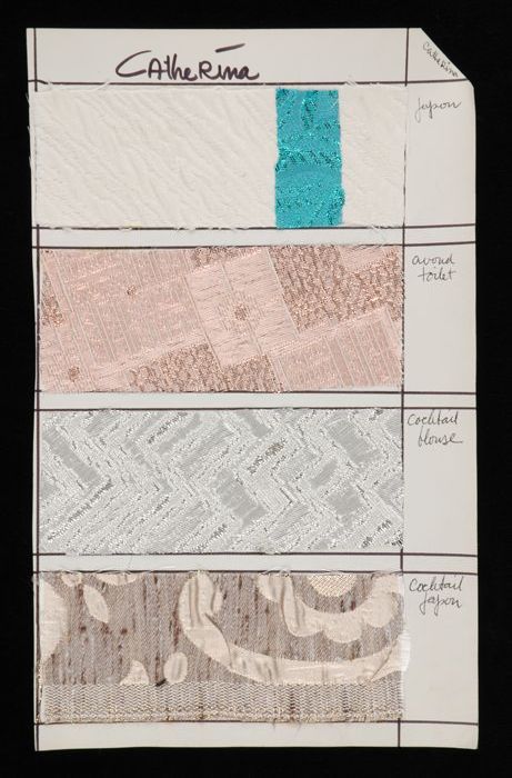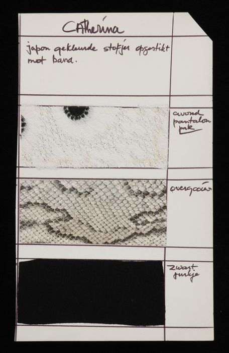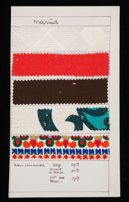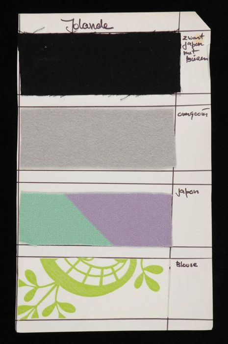 Stalenblad met drie opgeplakte stoffen van de collec...
