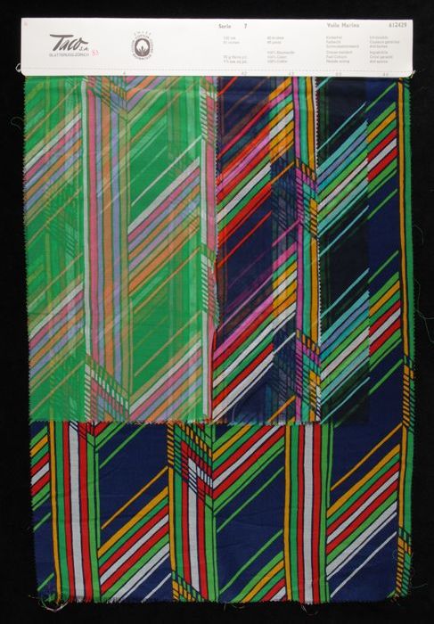 Stalenblad met acht opgeplakte stoffen van de collec...